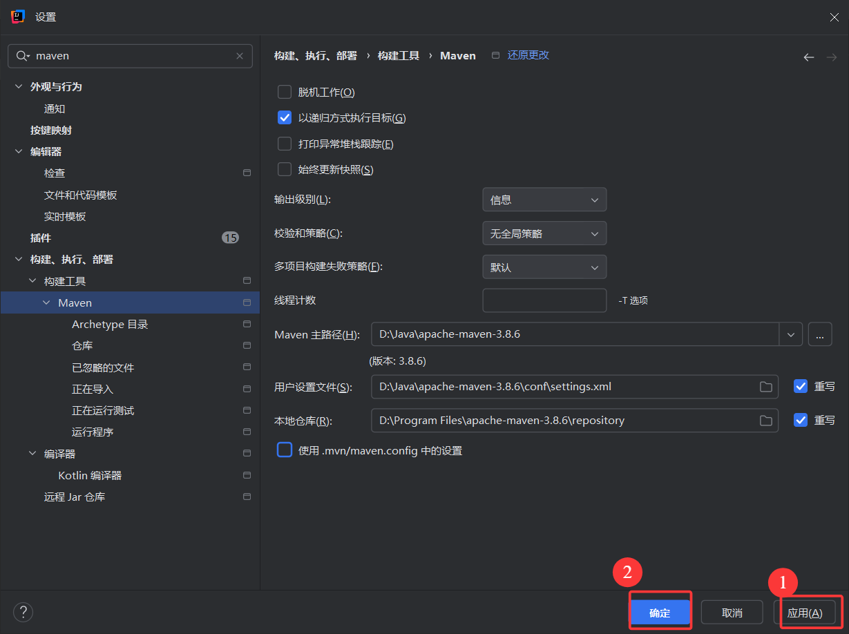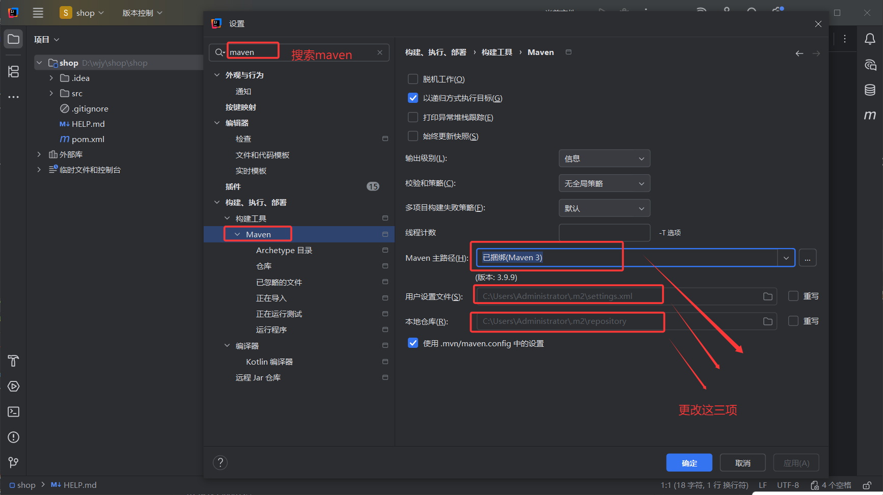 2.更改maven配置路径
