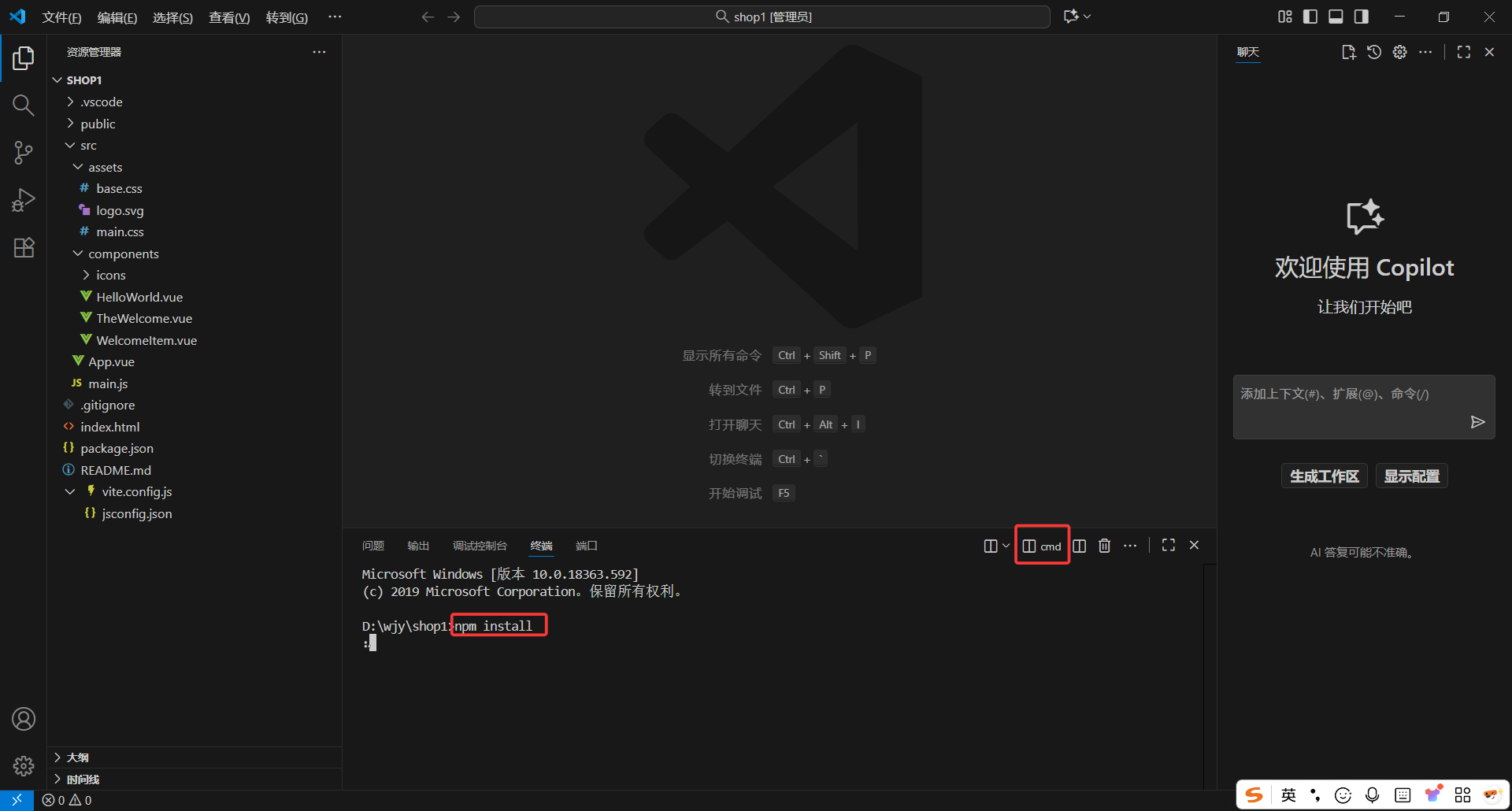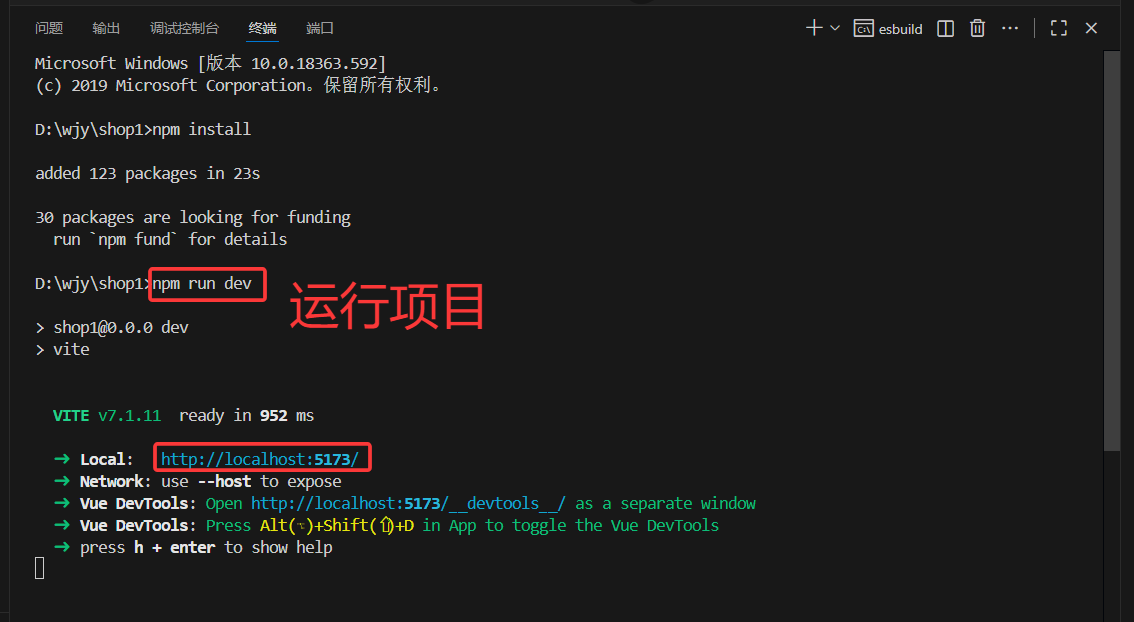 在终端cmd输入 npm run dev 即可运行成功,然后按住ctrl+鼠标单击网址或者复制网址到浏览器即可出现此页面