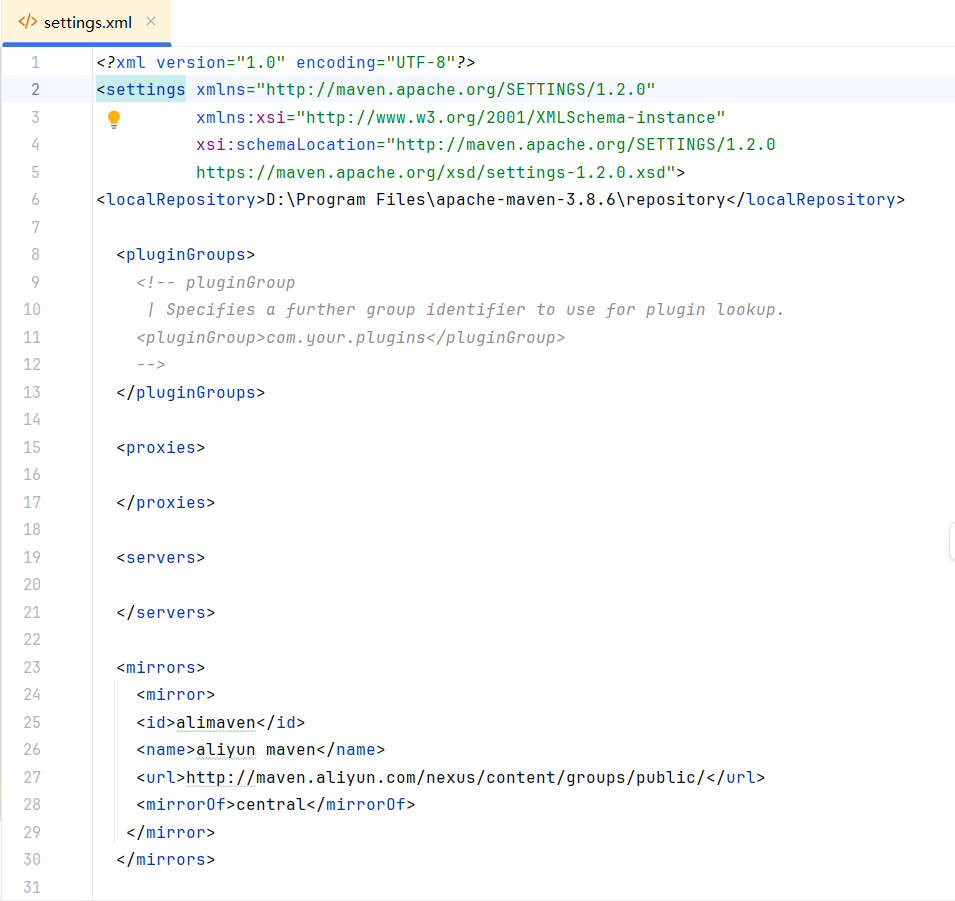 <localRepository>自己的本地仓库路径</localRepository>