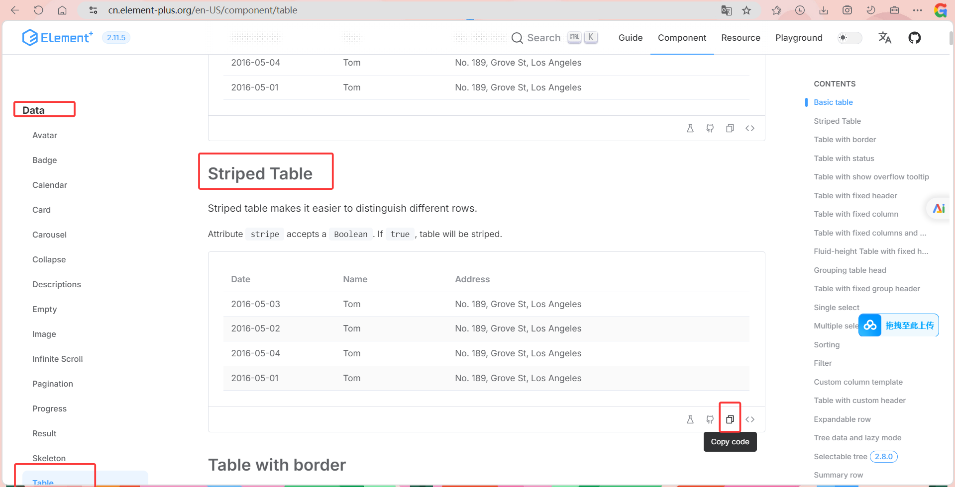 这是一个条纹表格的代码,从官方文档的模版复制即可