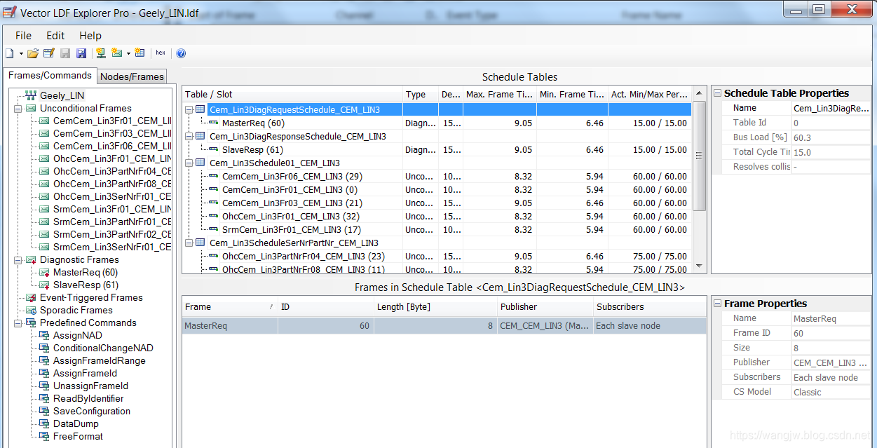 Table Id = 0的帧为3C帧,为诊断请求帧,平时更经常使用 Cem_Lin3Schedule01_CEM_LIN3来和下位机进行通信,