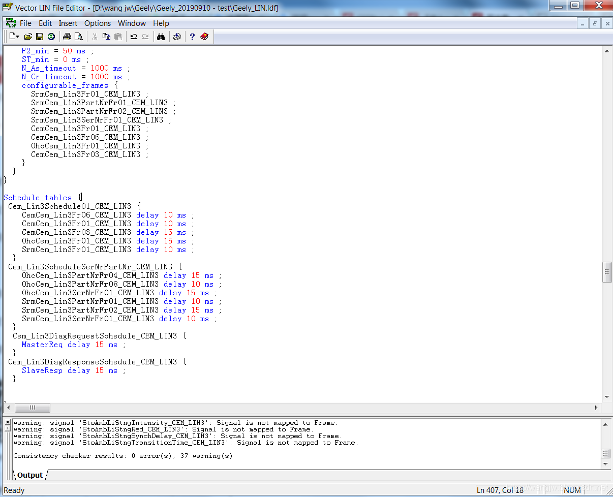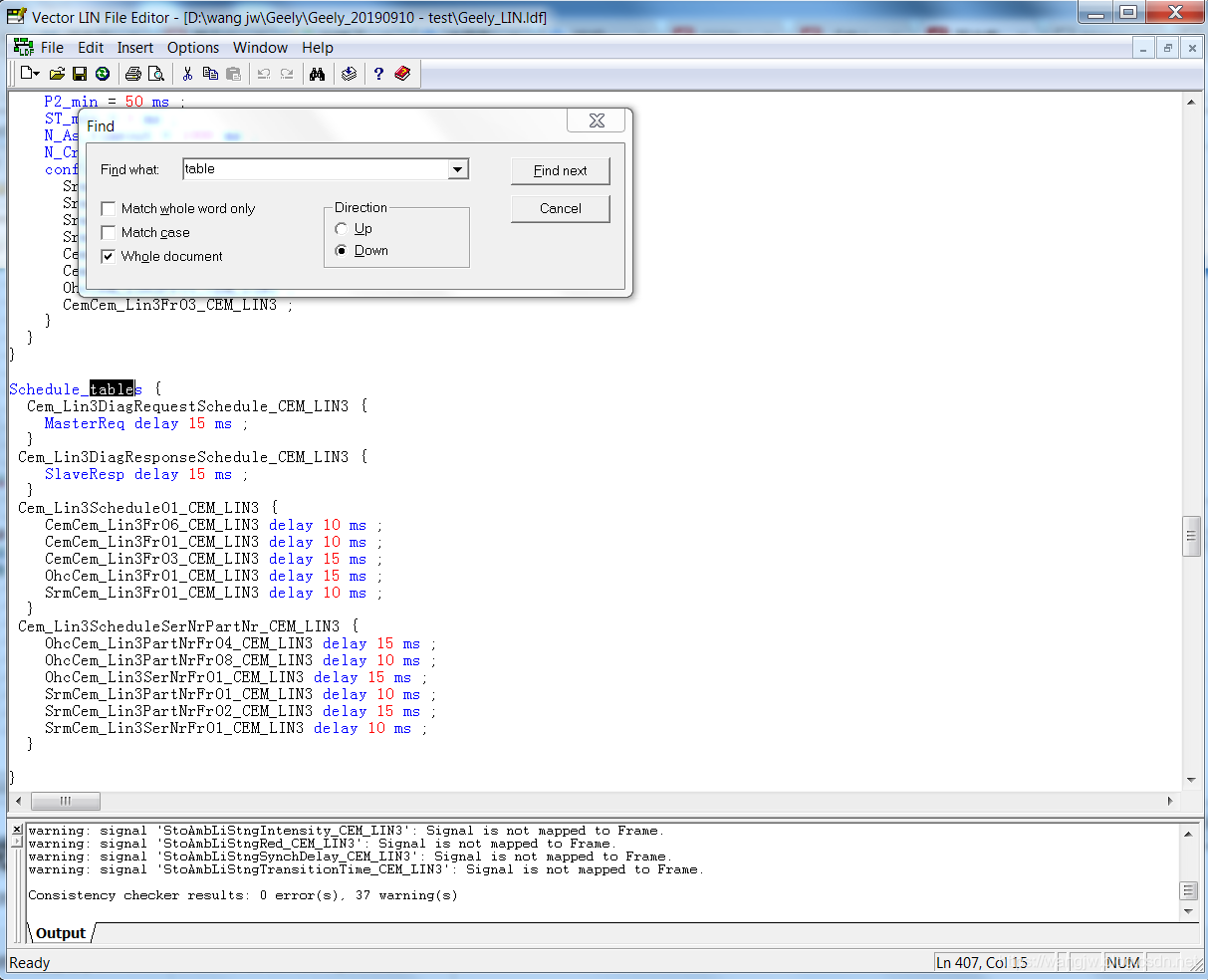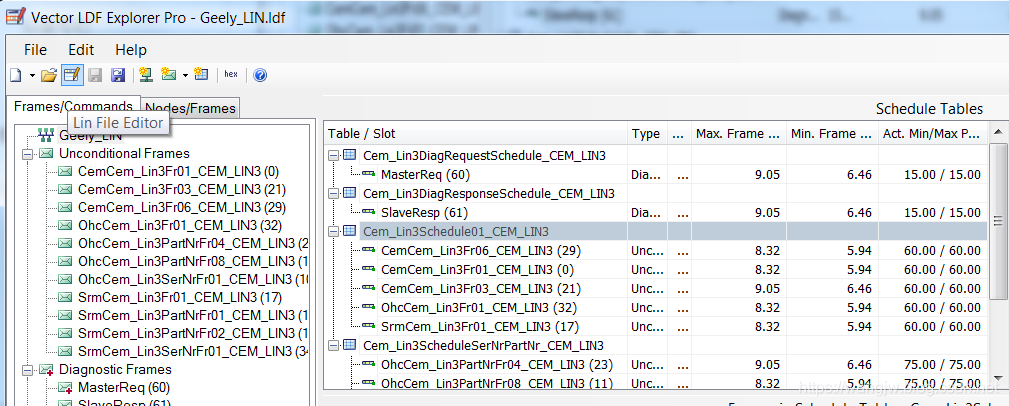 点击“Lin File Editor”,进入ldf文件的编辑模式,搜索"table"关键字 ,找到Schedule_tables