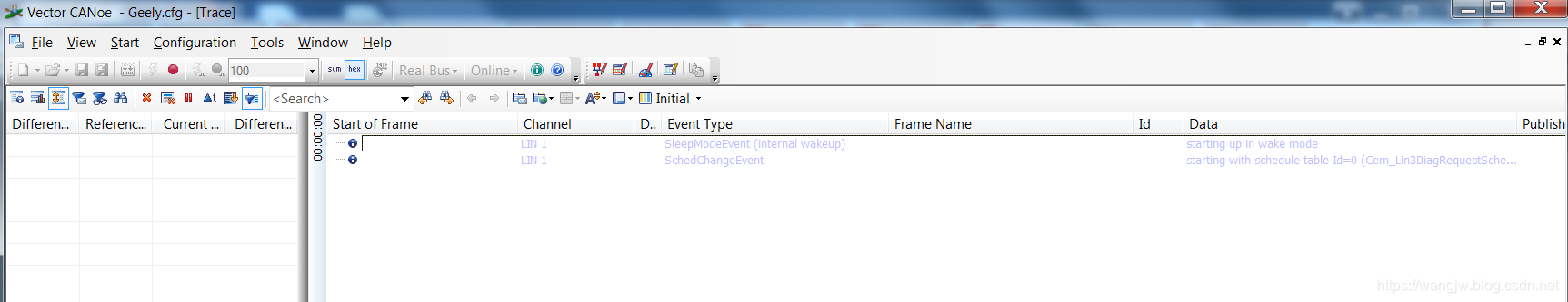 用Vector CANoe开发PLIN接口的上位机,但是倒入ldf文件之后,发现Trace窗口没有帧调度启动