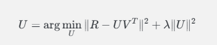 固定物品特征矩阵 VV,优化用户特征矩阵 UU: