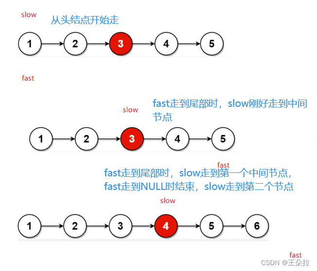 //利用快慢指针,找到中间节点,slow走一步,fast走两步