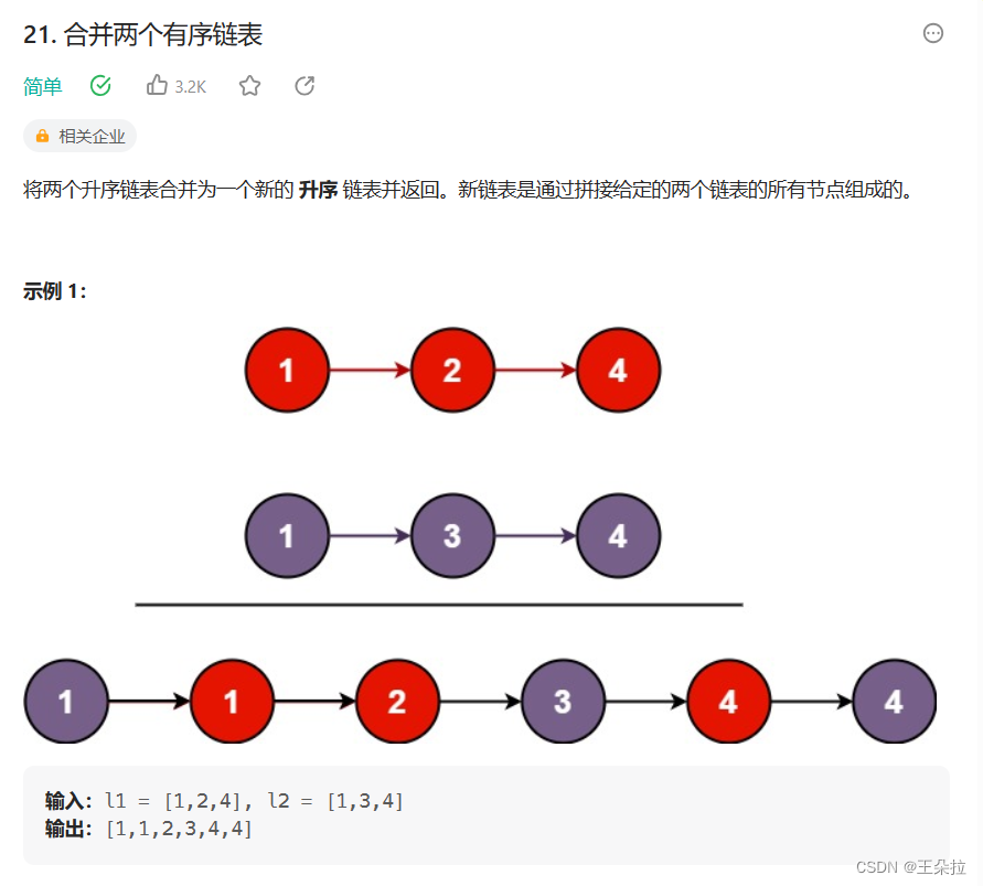 题目链接:https://leetcode.cn/problems/merge-two-sorted-lists/description/