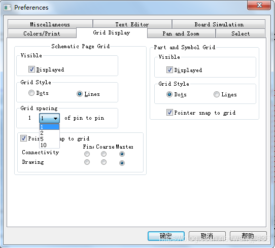 2、CANDANCE原理图栅格有两种显示效果,一种是点状,一种是线状,选择Grid Display,设置如下: