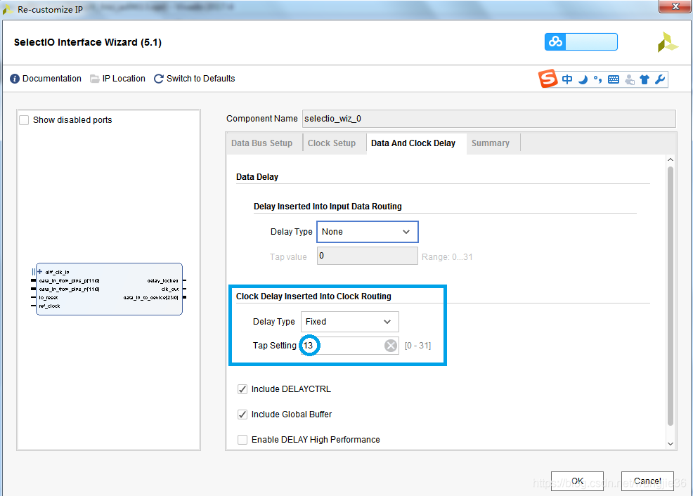 将tap setting 设置为13,将时钟的边沿对准数据的中间,以免数据出错