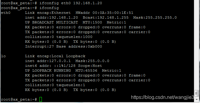 root@ax_peta:~# ifconfig eth0 192.168.1.20
