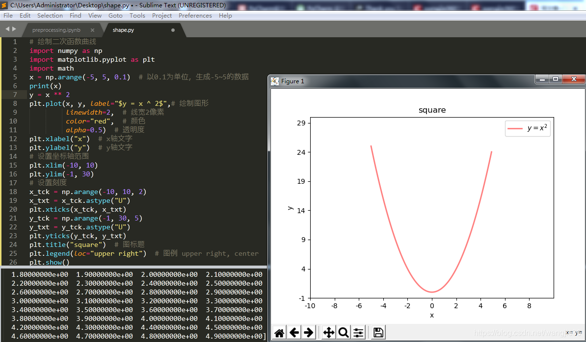r'$y = x ^ 2$', #备注中显示的文本内容