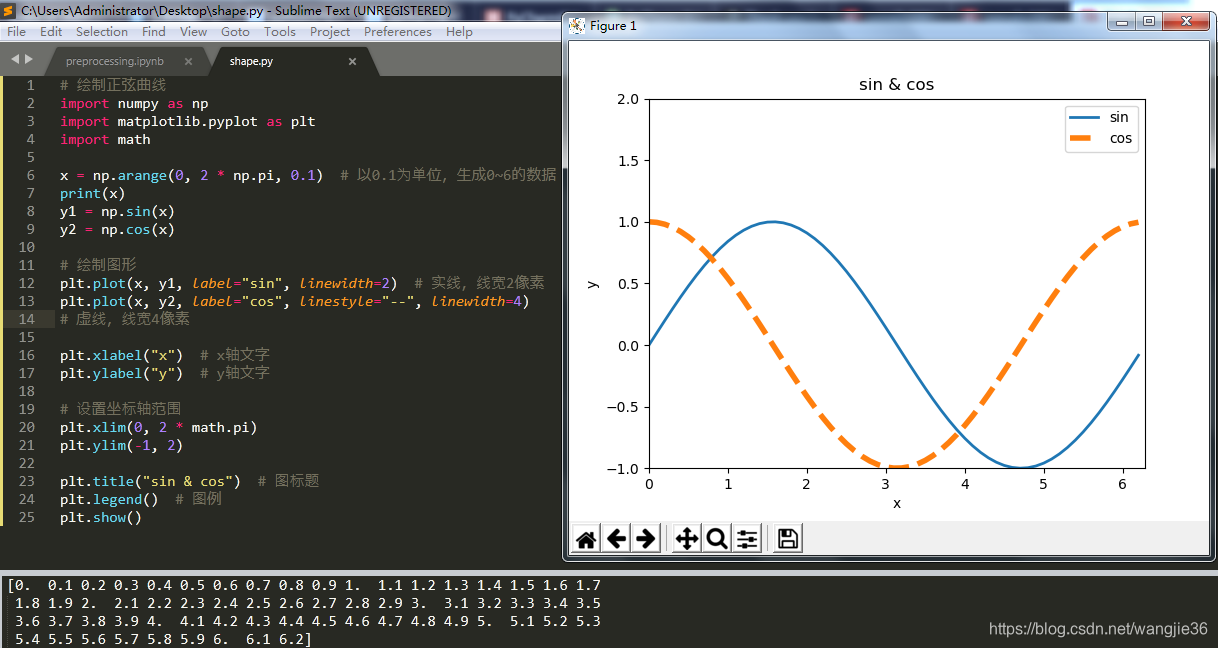 案例:绘制正弦、余弦曲线,并设置线型、线宽、颜色、透明度,