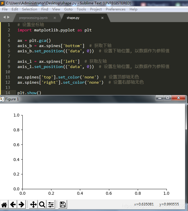 # 设置坐标轴的位置。 该方法需要传入2个元素的元组作为参数