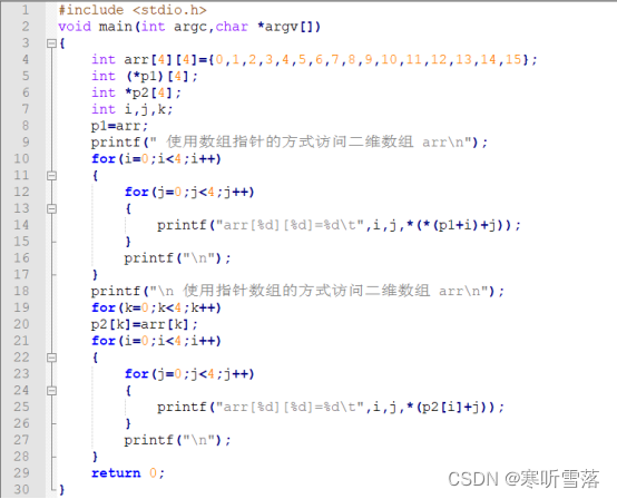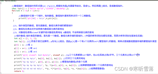 int (*p)[2] = array; // 定义一个数组指针并指针二维数组的首地址