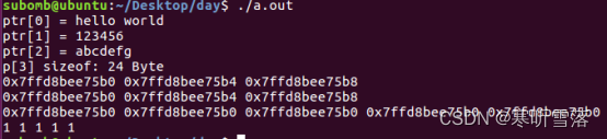 (1)空指针里记录空地址(NULL),这个地址的数值就是数字0