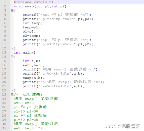(3)在C语言中函数传参是值传递的,函数的形参是不可以修改变量值,但是通过指针却可以。 函数传参是不可修改变量的值,但是指针就可以。