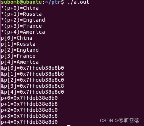 p++; // 数组指针加1,表示指指针向下移动一行。
