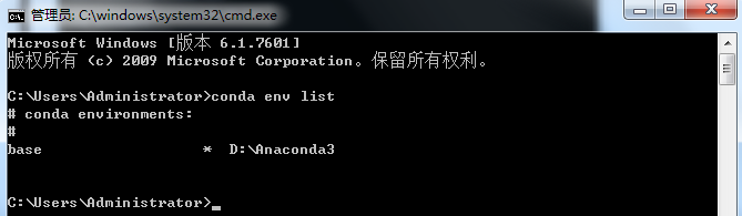 activate 能将我们引入anaconda设定的虚拟环境中, 如果你后面什么参数都不加那么会进入anaconda自带的base环境,可以输入python试试, 这样会进入base环境的python解释器, 如果你把原来环境中的python环境去除掉会更能体会到, 这个时候在命令行中使用的已经不是你原来的python而是base环境下的python.而命令行前面也会多一个(base) 说明当前我们处于的是base环境下。