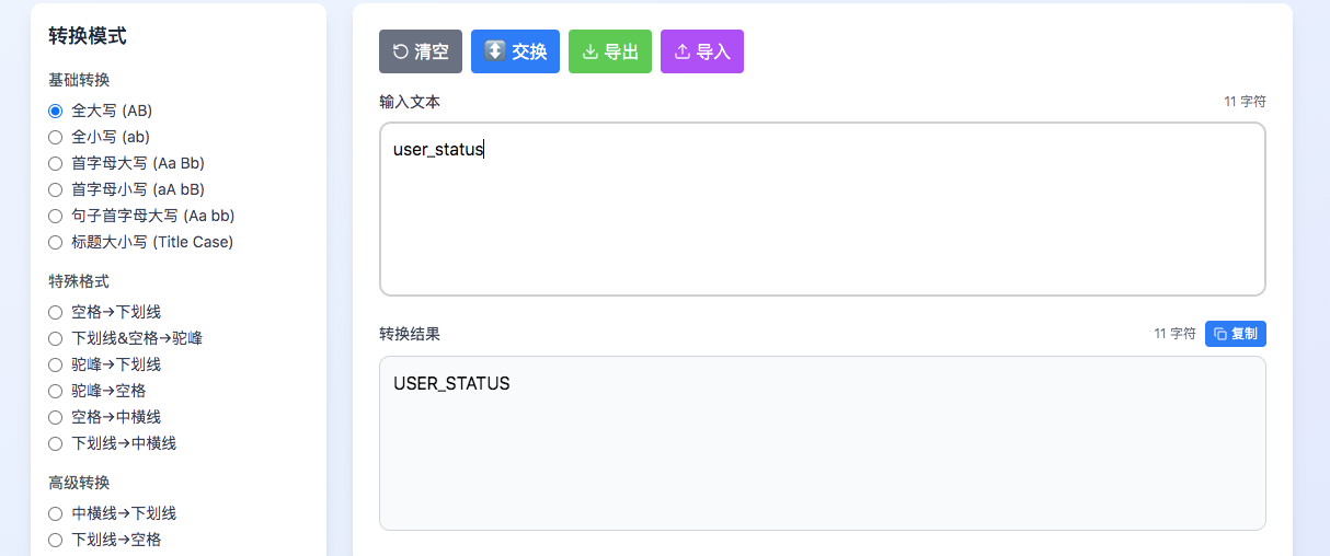 - 多格式智能互转:camelCase ⇄ snake_case ⇄ PascalCase ⇄ UPPER_CASE ⇄ kebab-case … 开发场景全覆盖