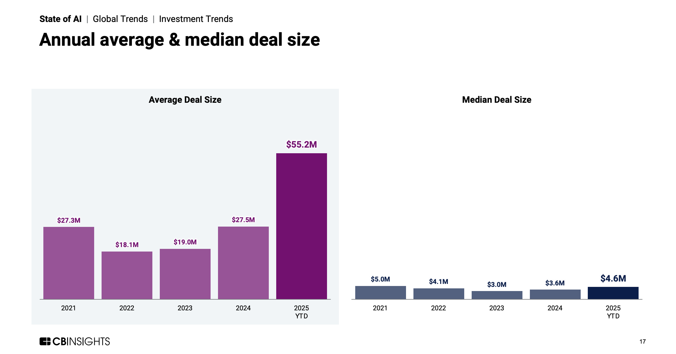 - 平均交易规模:从 2021 年的 27.3 百万美元增长至 2025 年的 55.2 百万美元,显示交易金额显著提升。