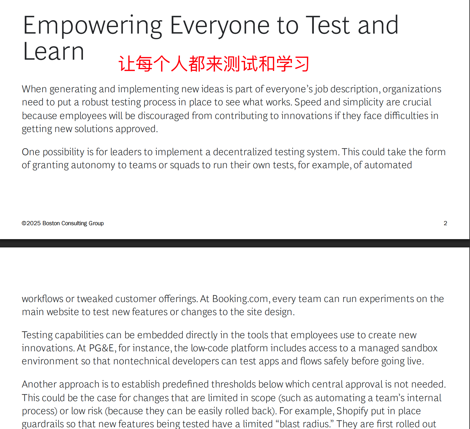 AI 工具是起点,系统与文化是保障 。企业若想在 2025 年及以后保持竞争力,不妨从赋能员工测试、放大成功想法入手。