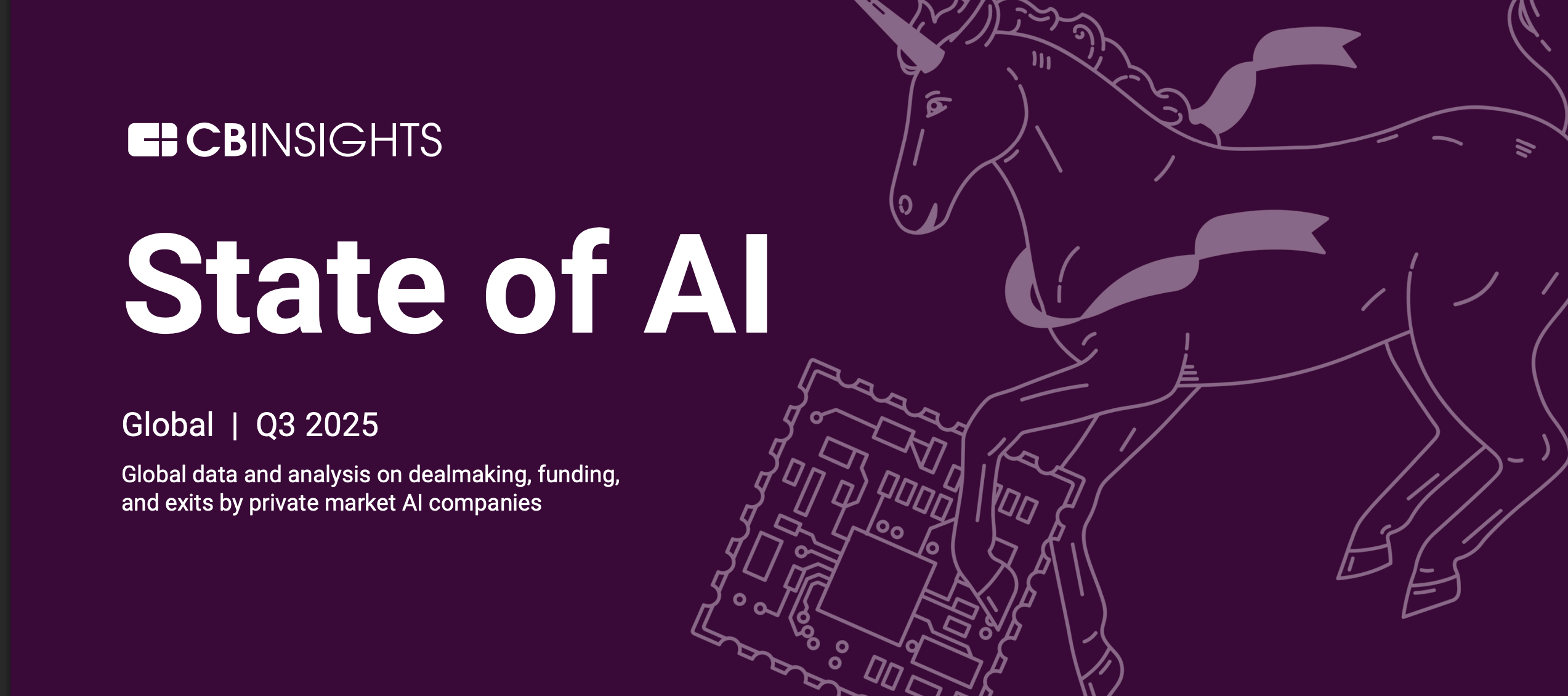 CB Insights 最新发布报告《State of AI Global Q3 2025》。这份报告聚焦全球私有市场AI公司的交易、融资和退出动态,基于截至 2025 年 10 月 1 日的数据,涵盖了超过 43,000 家AI企业。
