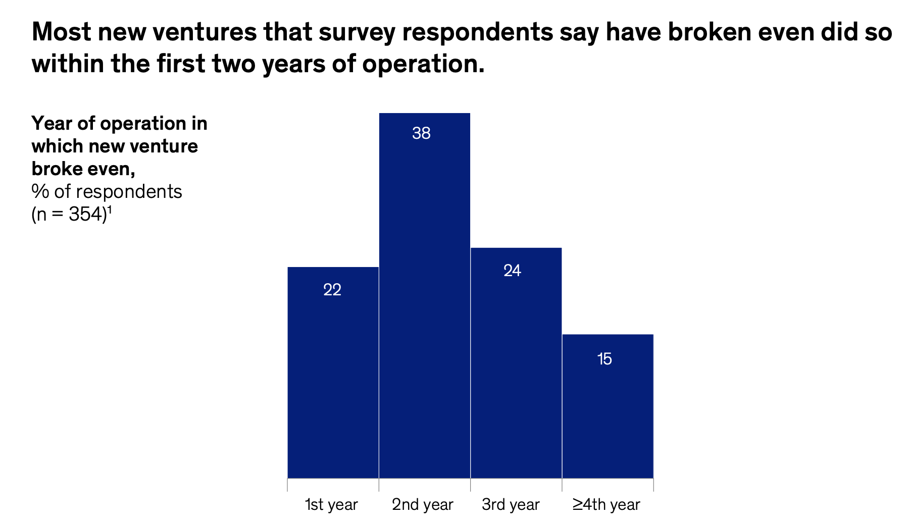 在资金紧俏时代,企业学聪明了:不盲目烧钱,而是基于“熟门熟路”的概念或资产,深耕本行业。结果?盈亏平衡投资额从去年的1.25亿美元锐减至 7700万 美元,仅占核心业务年营收的 2%。53%的风险在 1000 万美元内实现盈亏平衡,远高于 2024 年的 35%。