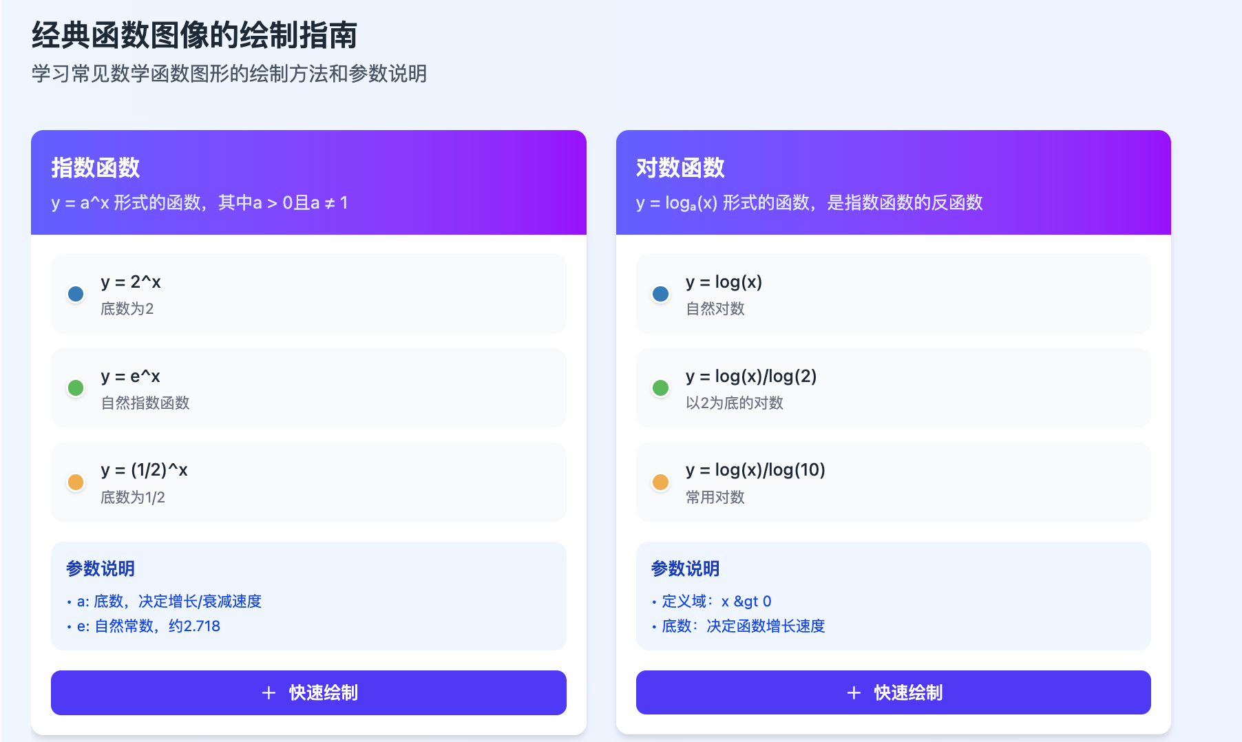 职场里呢?数据分析或报告时,函数可视化是标配。假设你是市场专员,要展示 y=e^x 的指数增长模型,模拟用户增长曲线。输入公式,调整 x 范围(比如 0 到 5),图像一出,就能直观看到“雪球效应”。对比 y=ln(x) 的对数曲线,看衰减速度。成品分享给团队,专业又快。比起专业软件,它轻量,不用学曲线。