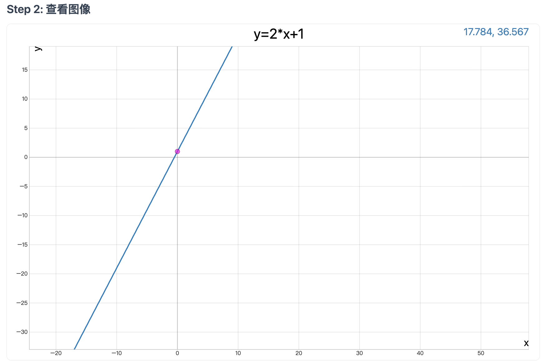 举个最基本的例子:想画 y=2x+1 这条直线。直接输入 y=2x+1 ,图像就自动绘制出来了——一条从左下到右上的直线,坐标轴标得清清楚楚。