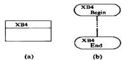 图5 并行方式示例 三,使用约定 关于流程图符号的使用约定,简要地说明以下几点: 1.图的布局 流程图中所用的符号应该均心地分布,连线保持合理的长度,并尽量少使用长线. 2.符号的形状 流程图中多数符号内的空白供标注说明性文字.使用各种符号应注意符号的外形和各符号大小的统一,避免使符号变形或各符号大小比例不一. 3.符号内的说明文字 应使符号内的说明文字尽可能简明.通常按从左向右和从上向下方式书写,并与流向无关.如果说明文字较多,符号内写不完,可使用注解符.若注解符干扰或影响到图形的流程,应将正文写在另外一页上,并注明引用符号. 4.符号标识符 图6 符号标识符和符号描述符 为符号规定标识符是为了便于其它文件引用该符号.便如,程序清单中引用到流程图中的特定符号.符号标识符一般写在符号的左上角,参看图6(a). 5.符号描述符 为便于进一步理解符号的功能,可标注符号描述符.通常描述符写在符号的右上角,如图6(b)所示. 6.详细表示 在处理符号或数据符号中画一横线,表明该符号在同一文件集中的其它地言有更为详细的表示.横线在符号内靠近项端,详细表示的标识符写在符号内横线之上,见图7(a).端点符用作详细表示的开始符号和结束符号,在此符号中应给出加横线符号中的标识符,见图7(b).