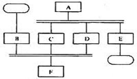 图4 省略符的使用 13.并行方式 ---- 一对平行线表示同步进行两个或两个以上并行方式的操作.并行方式的示例如图5,图中在处理A完成后才能进行处理C,D和E;同样,处理F要等处理B,C,D完成以后进行.但处理C可以处理D开始和(或)结束前开始和(或)结束.