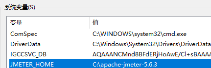 变量值:%JMETER_HOME%\lib\ext\ApacheJMeter_core.jar;%JMETER_HOME%\lib\jorphan.jar;%JMETER_HOME%\lib/logkit-2.0.jar