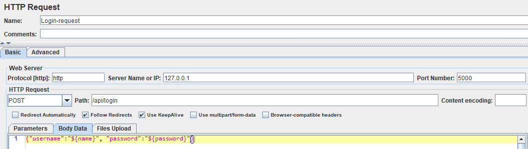 输入URL和具体的Path等信息,Body里填入登录的用户名和密码,可以参数化。