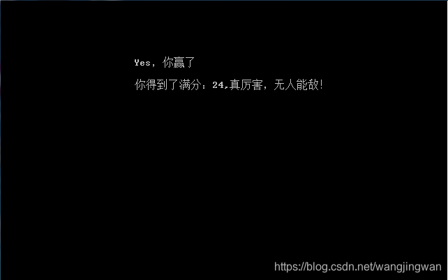 printf("\n\n\n\n\n\t\t\tYes,你赢了\n\n\t\t\t你得到了满分:24,真厉害,无人能敌!\n\n\n");