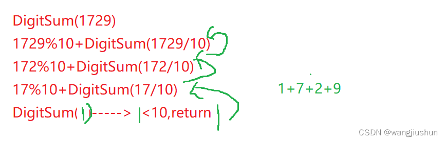 n%10+digitSum(n/10)(第n位+前n-1位之和)