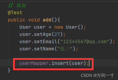 - 使用的方法为【insert()】,传入的是一个对象,默认自带主键策略,默认主键回填