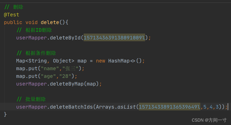 - 配置方法:在主键上面添加注解【@TableId(type = idType.主键策略)】