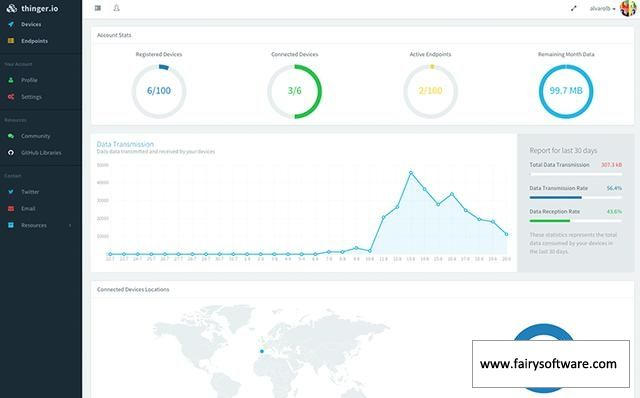 http://Thinger.io为连接设备提供了可扩展的云基础。可以通过运行管理控制台来快速处理它们,或者使用其REST API将它们组合到项目逻辑中。它支持Raspberry Pi,Intel Edison,ESP8266。Thinger可以与IFTT集成,并在漂亮的仪表板上提供实时数据。
