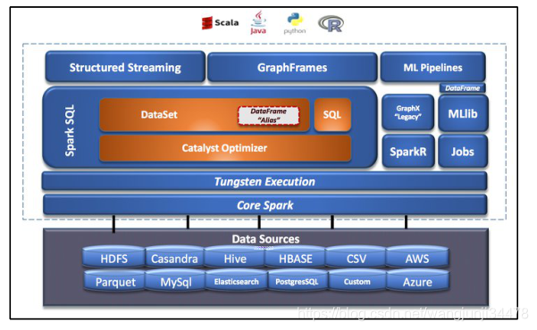 Spark具有模块化方法,如下图所示: