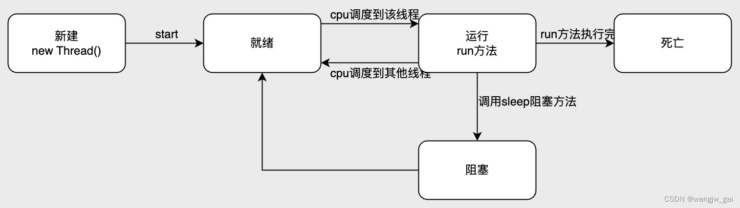 因为频繁开启线程和停止线程,线程需要从新被cpu从就绪到运行状态调度,需要发生cpu上下文切换,效率非常低。
