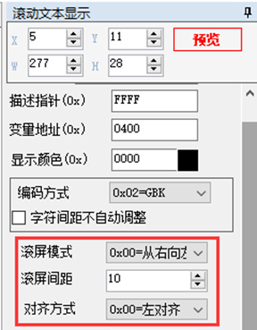 图22 滚动文本显示参数设置