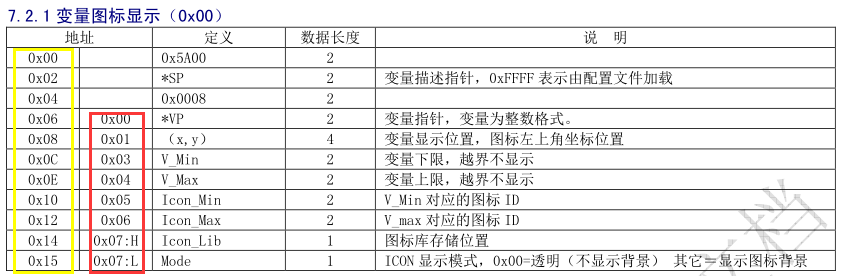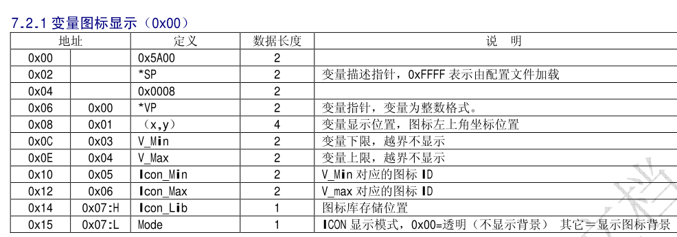 (1)变量图标 占用一个地址。如5A A5 05 82 0001 0001显示0001地址的1号图标。