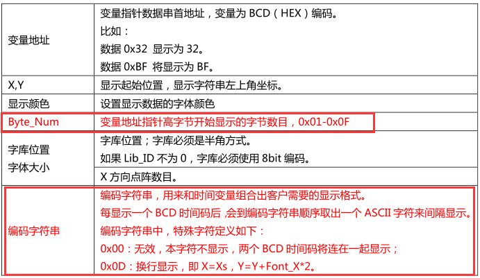 (4)文本变量 一个汉字占用两个字节地址,如发指令显示北京,5A A5 07 82 0008 B1B1 BEA9。