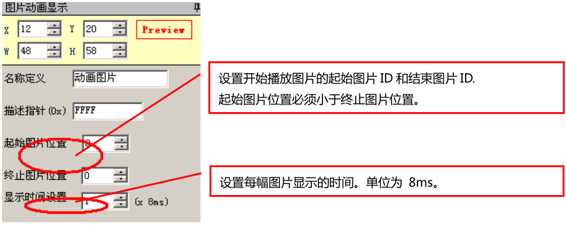 用于实现图片自动播放功能,如开机动画等,设置开始播放的起始图片和结束图片,实现(循环)播放,图片动画显示如图13所示。