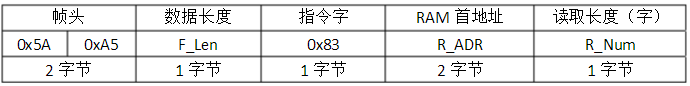 5A A5 表示:帧头(默认帧头,如果自行修改,请根据当前帧头发送指令)