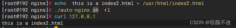 [root@192 nginx]# echo this is a index2.html > /usr/html/index2.html
