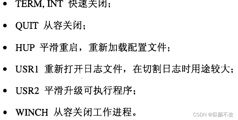 从容是指,比较安全的停止nginx,比如未处理完成的连接,处理完成之后停止