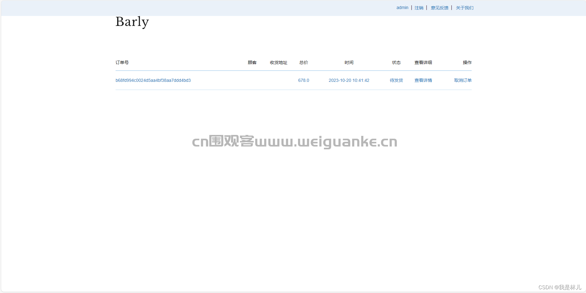 4.详情表:订单号、顾客、地址、总价、时间、状态
