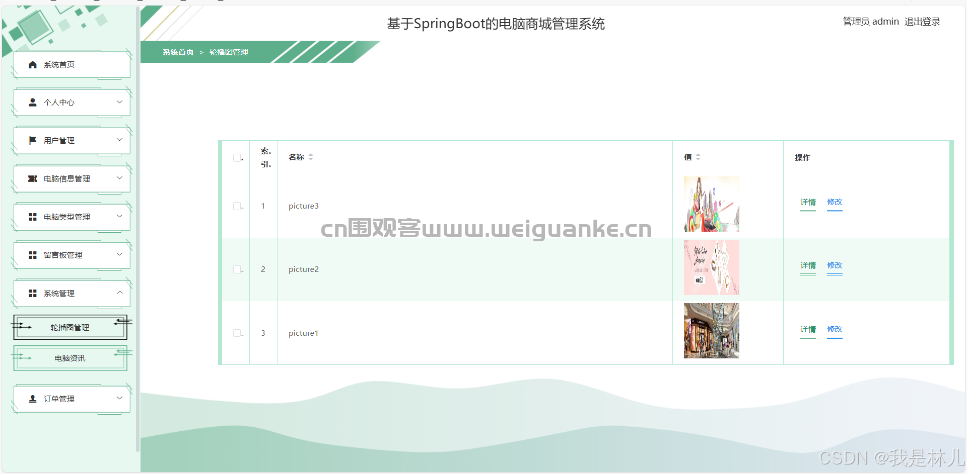 轮播图管理:管理员可编辑和删除首页轮播图。