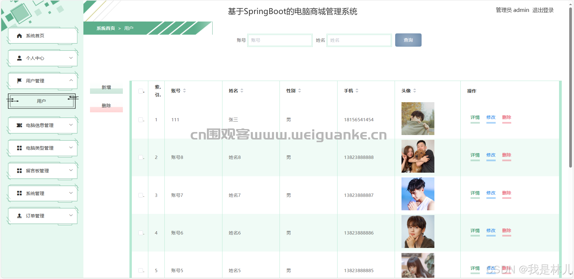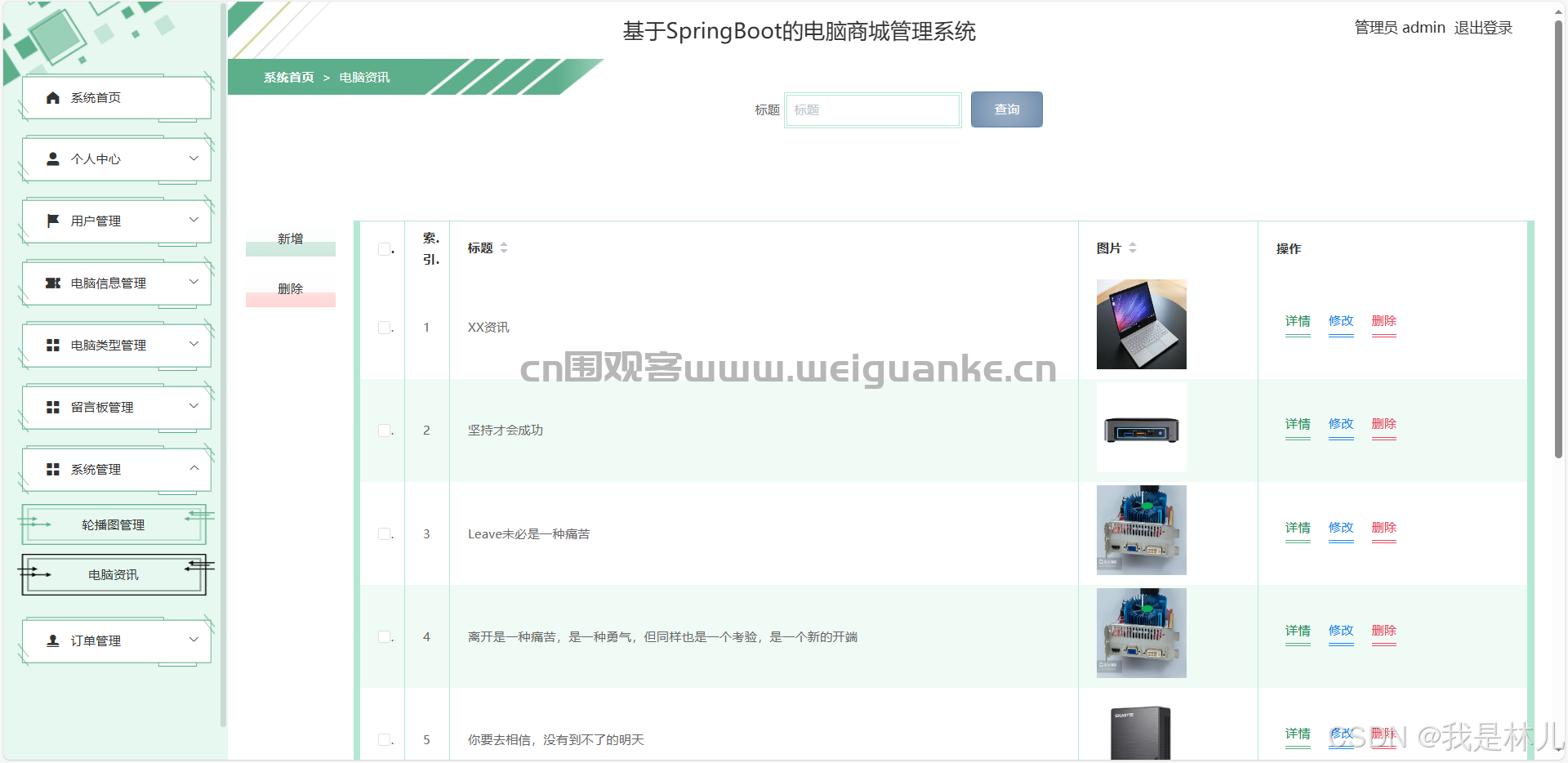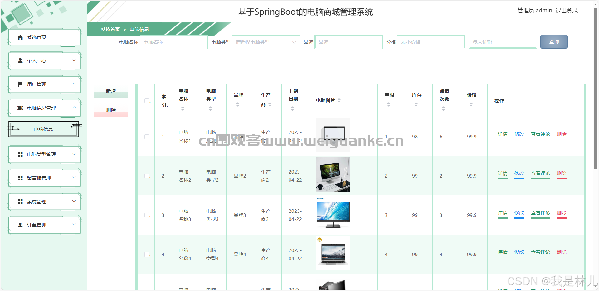 电脑信息管理:管理员可添加、编辑、删除和上下架电脑产品信息并且查看其评论。