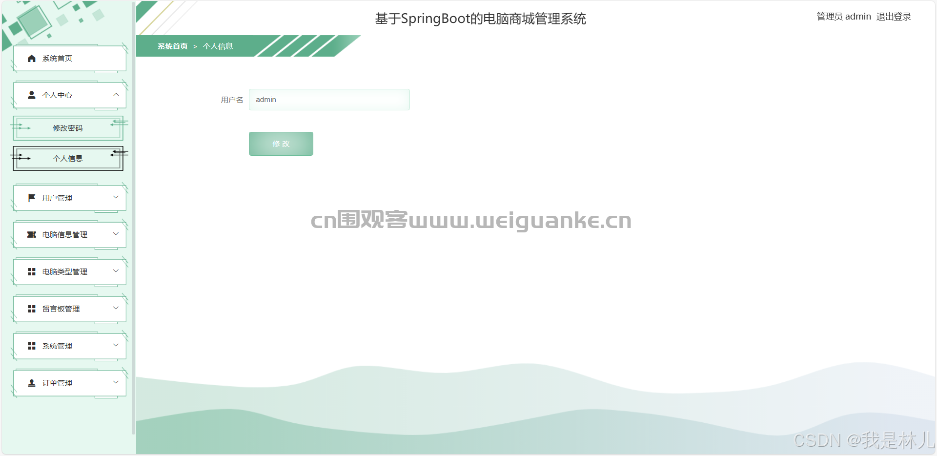 修改密码功能:管理员可修改自己的登录密码,以提高账户安全性。